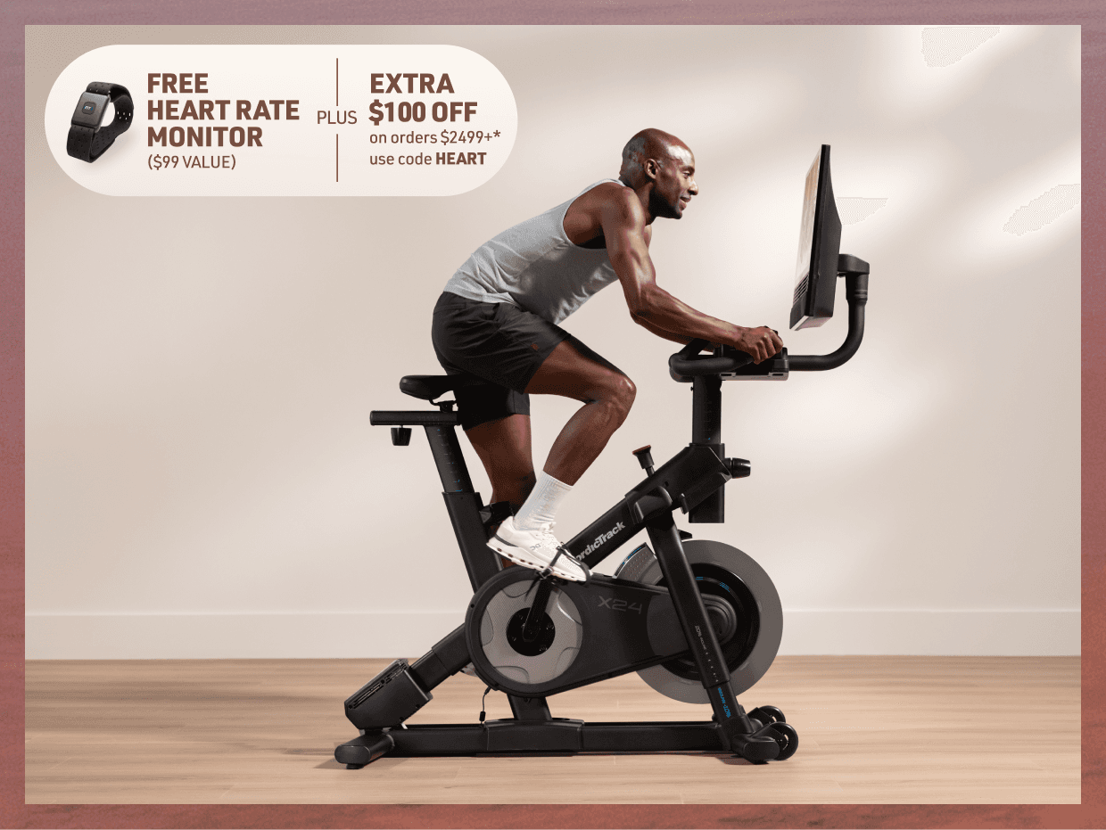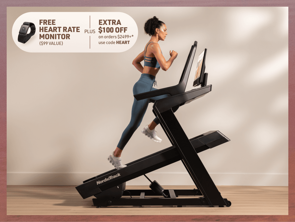 *Free Heart Rate Monitor ($99 value) + Extra $100 off orders $2,499+ (“Offer”) available only from February 3, 2026 until February 9, 2026 @ 11:59 PM MST for U.S. residents, 18+. Extra $100 discount applies only to qualifying orders with a subtotal of $2,499 or more at www.NordicTrack.com and does not apply to taxes, shipping, or other charges. Free heart rate monitor is available on a first-come, first-served basis while supplies last. Retail value of free item: $99. Limit one (1) free item and one (1) discount per customer and per order. Offer is not transferable, substitutable, or redeemable for cash or account credit, has no cash value, and will not be applied retroactively. Offer may not be combined with other promotions. Void where prohibited by law. Must enter promo code HEART at checkout to receive both the discount and free gift. Excludes Ultra Series products. NordicTrack reserves the right to end, revise, modify, or extend this Offer or its terms at any time without notice. NordicTrack is not responsible for any Offer errors, including technical errors.