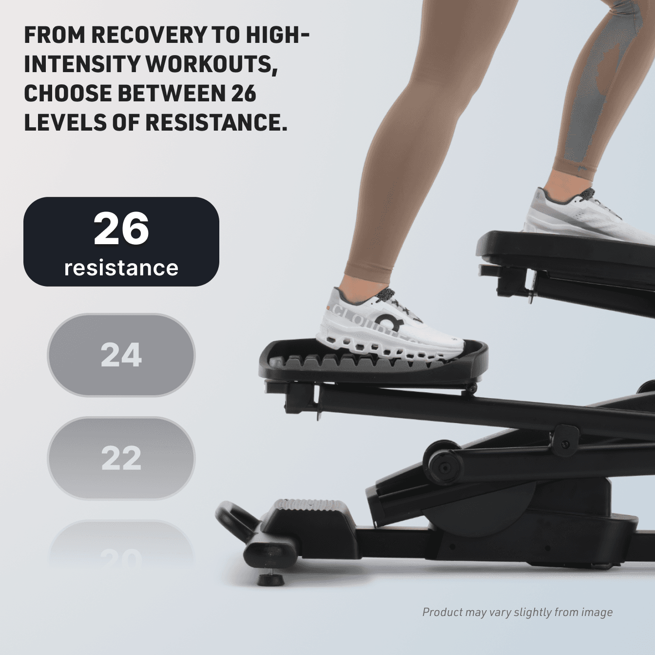 Add more variety to your routine with low-impact workouts. Maximize your output with resistance levels for recovery and high-intensity training.